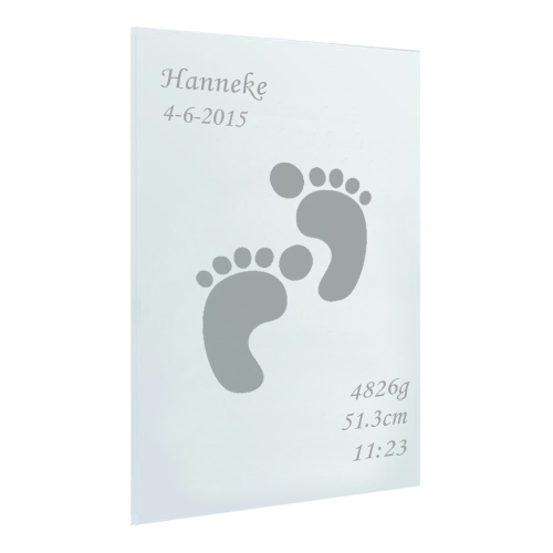 Geboortespiegel vierkant met voetjes. Laat de spiegel graveren met een naam, datum, gewicht,...